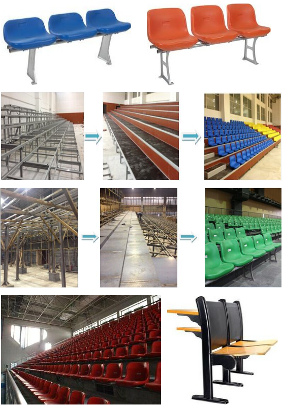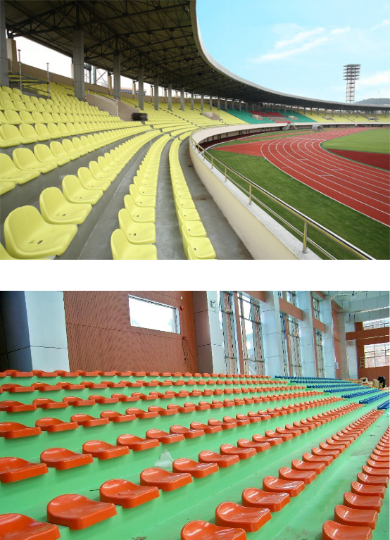 6、看臺(tái)座椅采用中空吹塑塑料座椅或鋁合金坐板。
