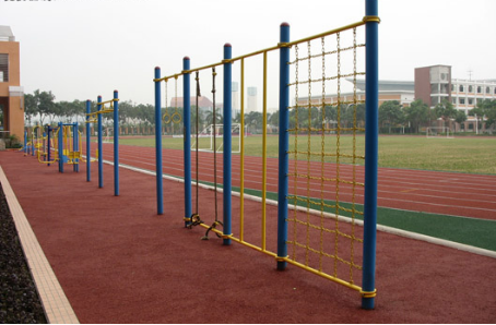 若塑膠跑道鋪裝施工過程中突然下雨,則應立即停止配料,用預先準備好的塑料薄膜蓋好電機、攪拌器及物料桶等,如攪拌器中有已攪拌好的膠漿應立即將膠漿倒入料車中,當垃圾處理掉。攤鋪工序應迅速將余下的膠漿鋪至模腔中。撒粒工序操作人員如發現仍有大面積未撒膠粒則立即停止撒膠,待第二天在已固化的膠面上刮涂一層膠漿再撒膠粒。